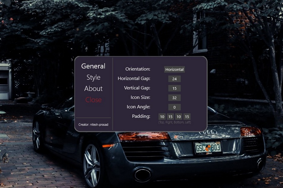 A modern desktop dock widget that acts as a customizable app launcher with sleek icons and flexible layout options. It supports horizontal and vertical modes, adjustable spacing, and visual customization, making your workspace both functional and visually clean.